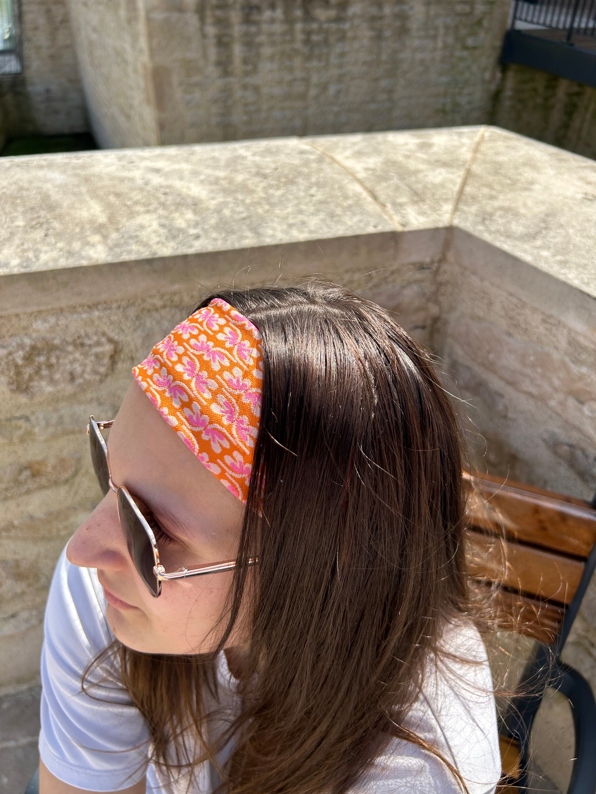 Bandeau Zouzou à motif rose et orange - Cousu à la main, made in France🌸