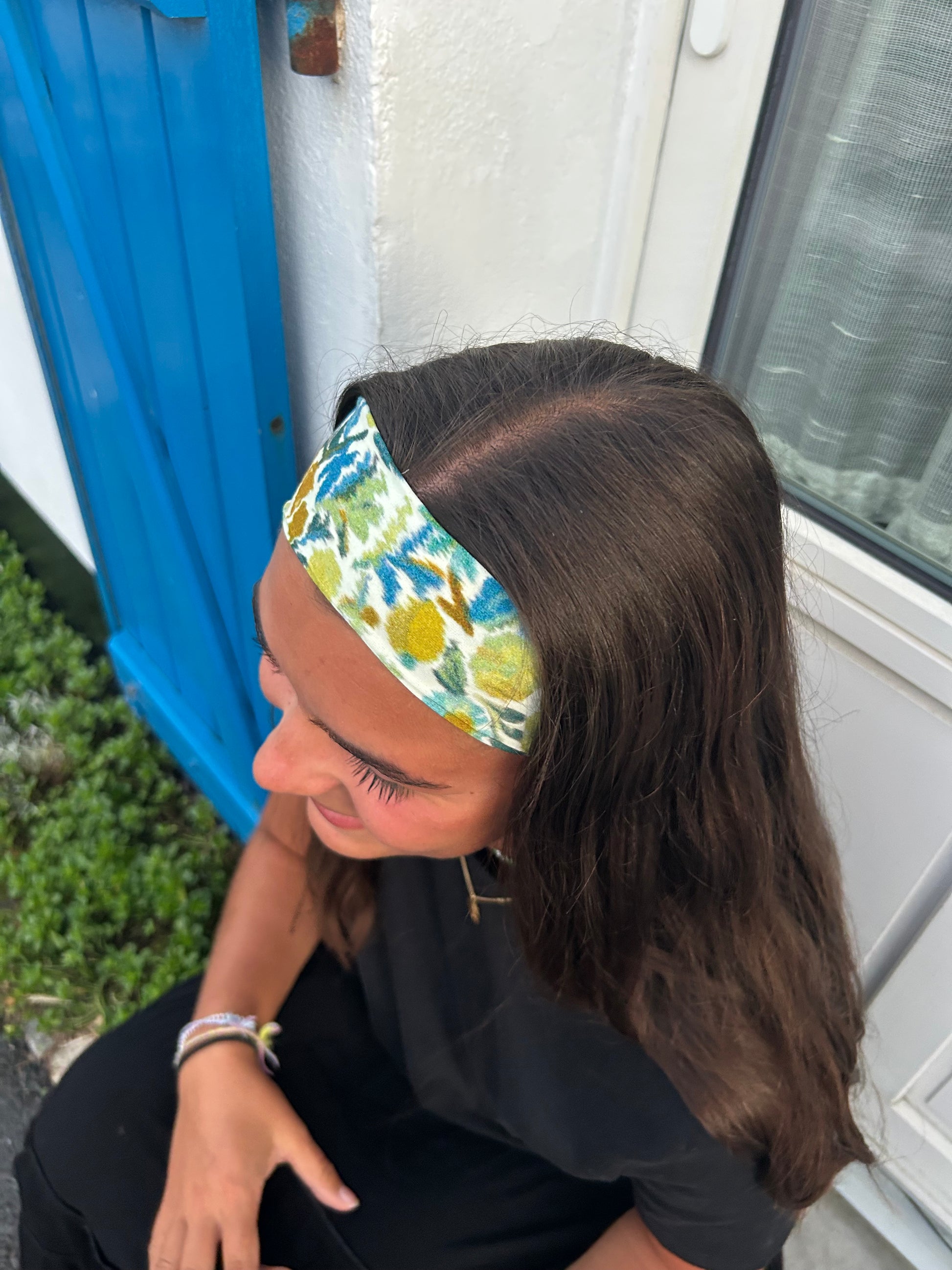 Bandeau Zouzou à motif bohème vert - Cousu à la main, made in France🌸