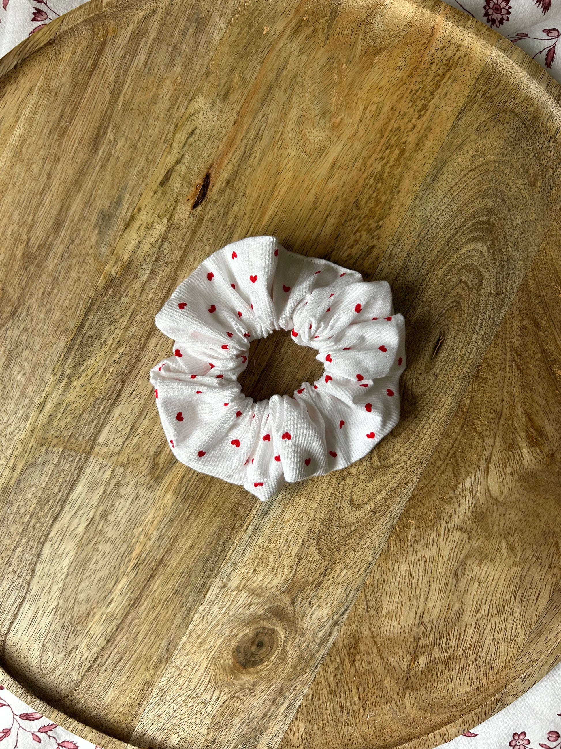 Chouchou blanc à petits cœurs rouges - Cousu à la main, made in France🌸
