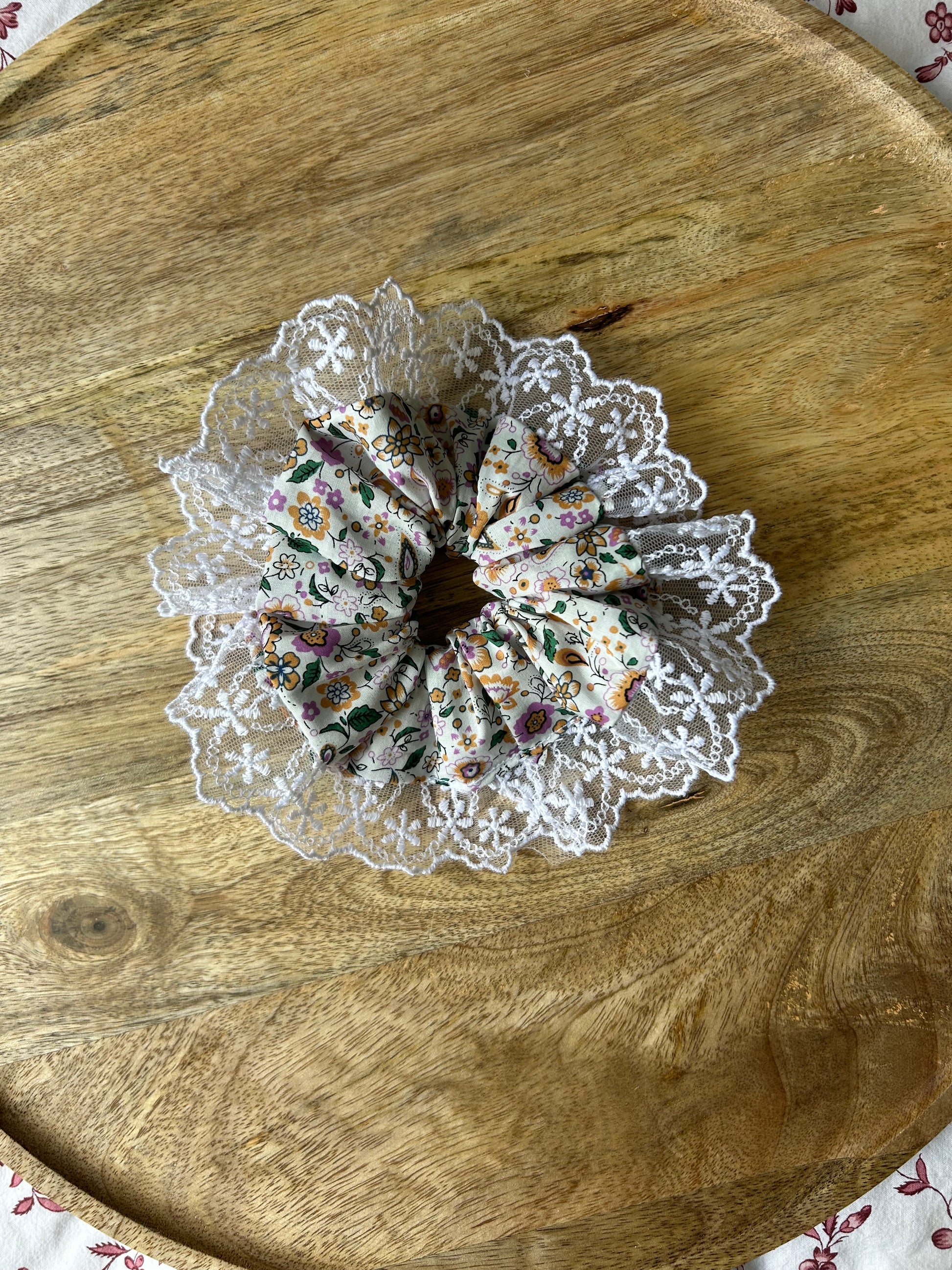 Chouchou fleurs dentelle - Cousu à la main, made in France🌸