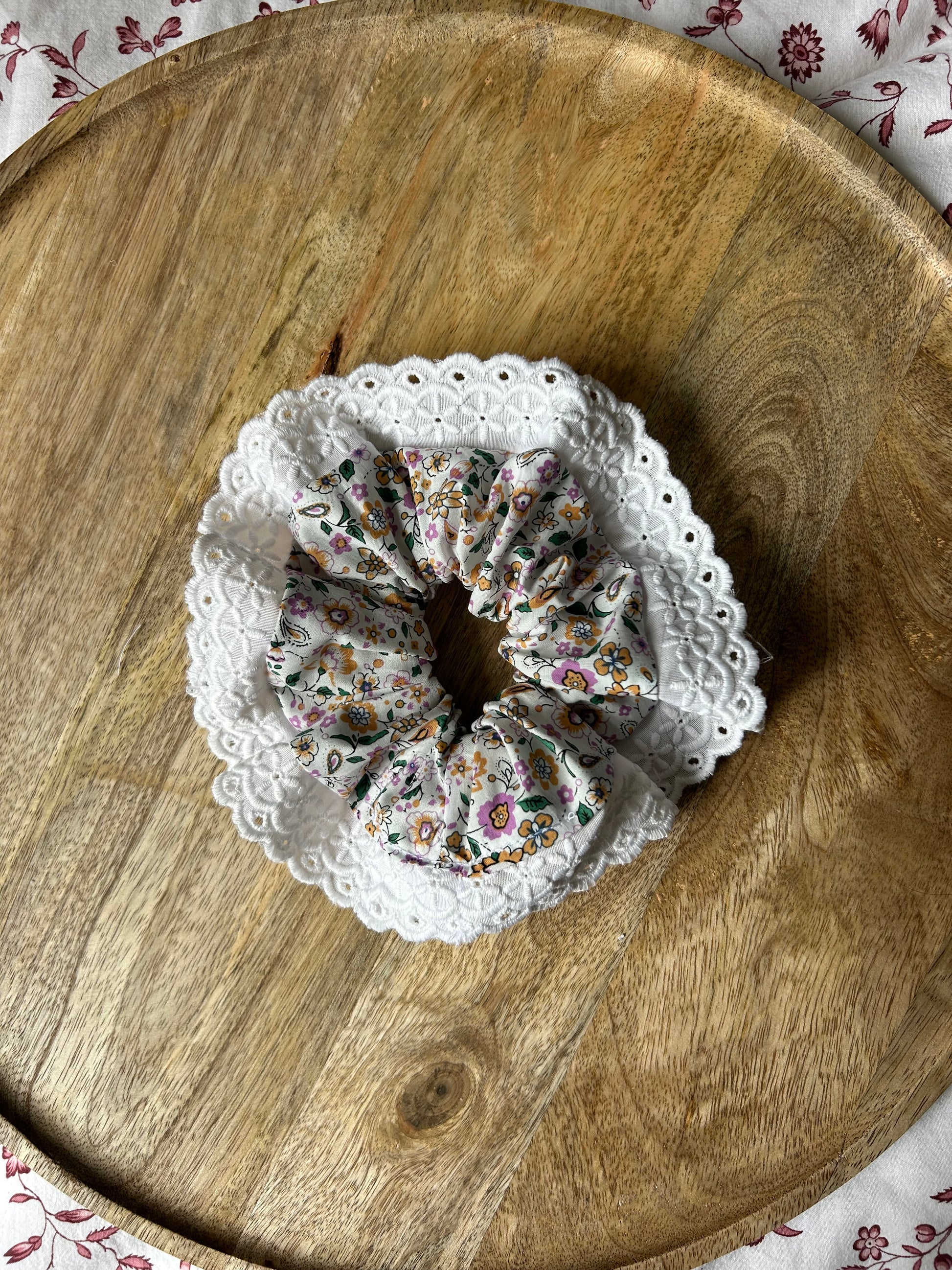 Chouchou fleuri détail dentelle - Cousu à la main, made in France🌸