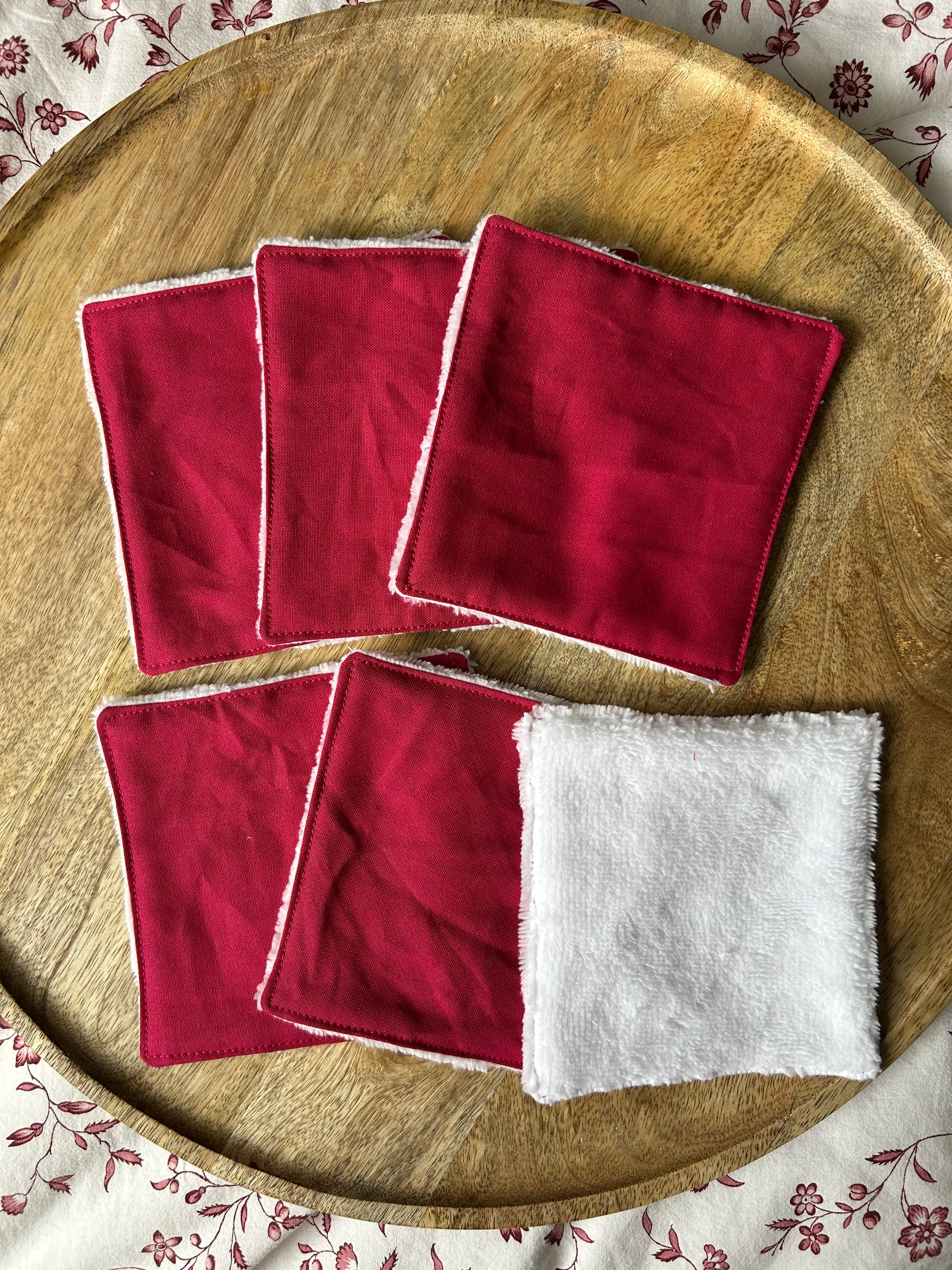 Lot de 6 cotons rose uni/éponge blanche - Cousu à la main, made in France🌸